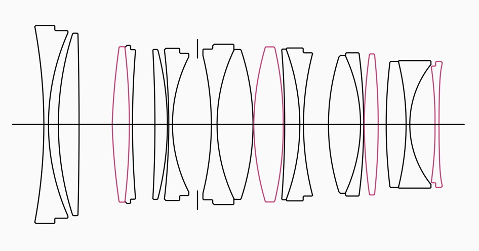 在适马50mm F/1.2 DG DN |Art里,适马采用了17片12组4片非球的搭配。