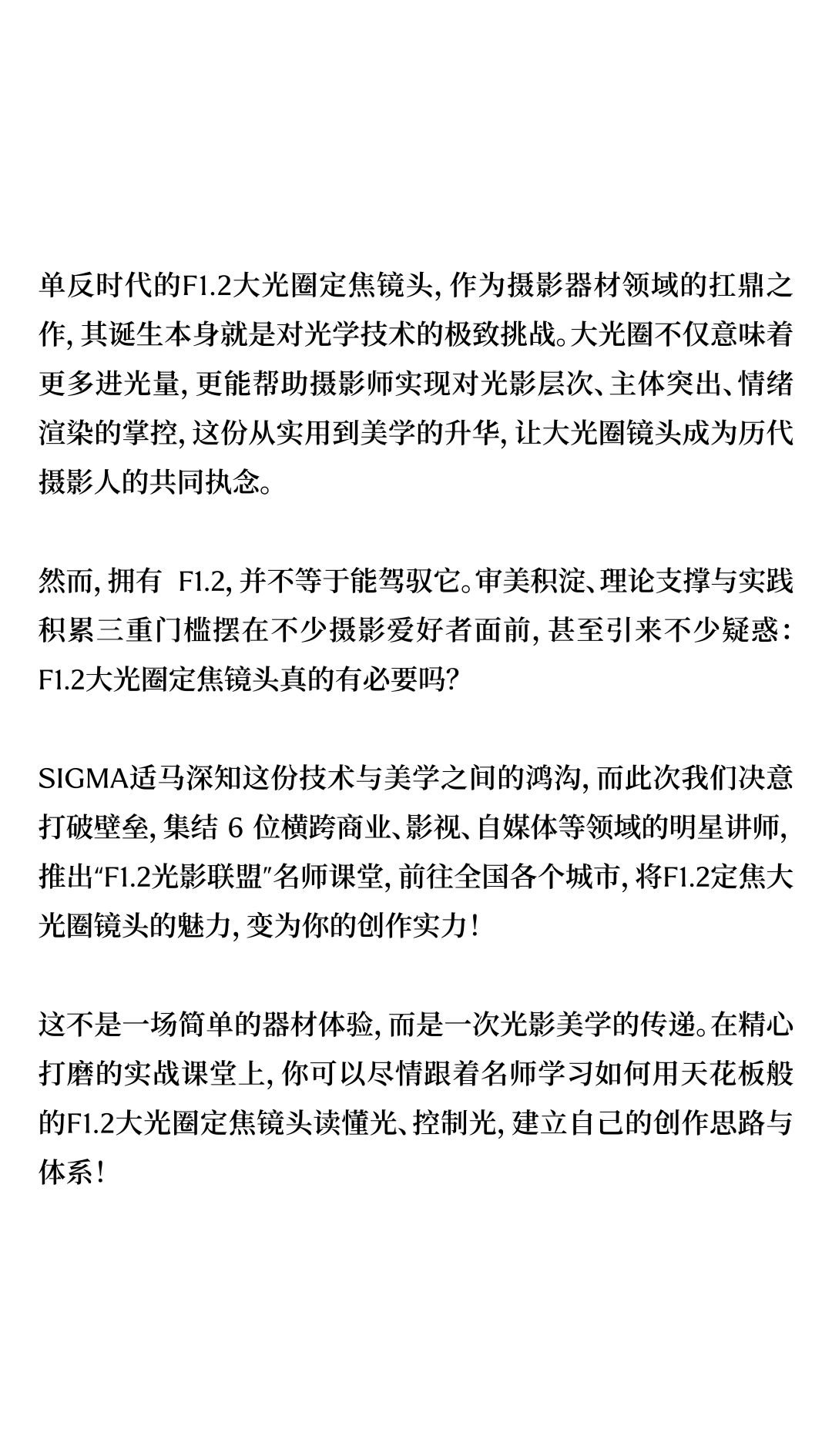 SIGMA 光影联盟|F1.2 明星讲师团,全国巡游启动! 2025-11-25 相关文章 2025佳能影像嘉年华之EOS影像艺术公园上海揭幕, 赋能影像艺术焕发新生2025-11-10新基准 再定义 索尼发布全画幅微单新基准Alpha 7 V2025-12-02华为Mate 80系列 | Mate X7及全场景新品发布会举行,重磅新品悉数亮相2025-11-26固件&软件更新! | LUMIX S1二代系列全画幅及LUMIX Flow专业性能再进化2025-11-26SIGMA 光影联盟|F1.2 明星讲师团,全国巡游启动!2025-11-25 杂志MAGAZINE微店淘宝APP下载