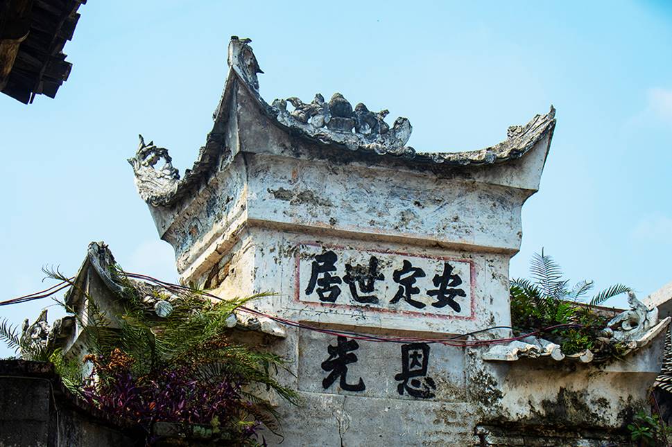 恩村有一北一南两座古门楼,北门称为“拱北里”,南门称为“图南门”。图为“图南门” 四方古门楼的上层。