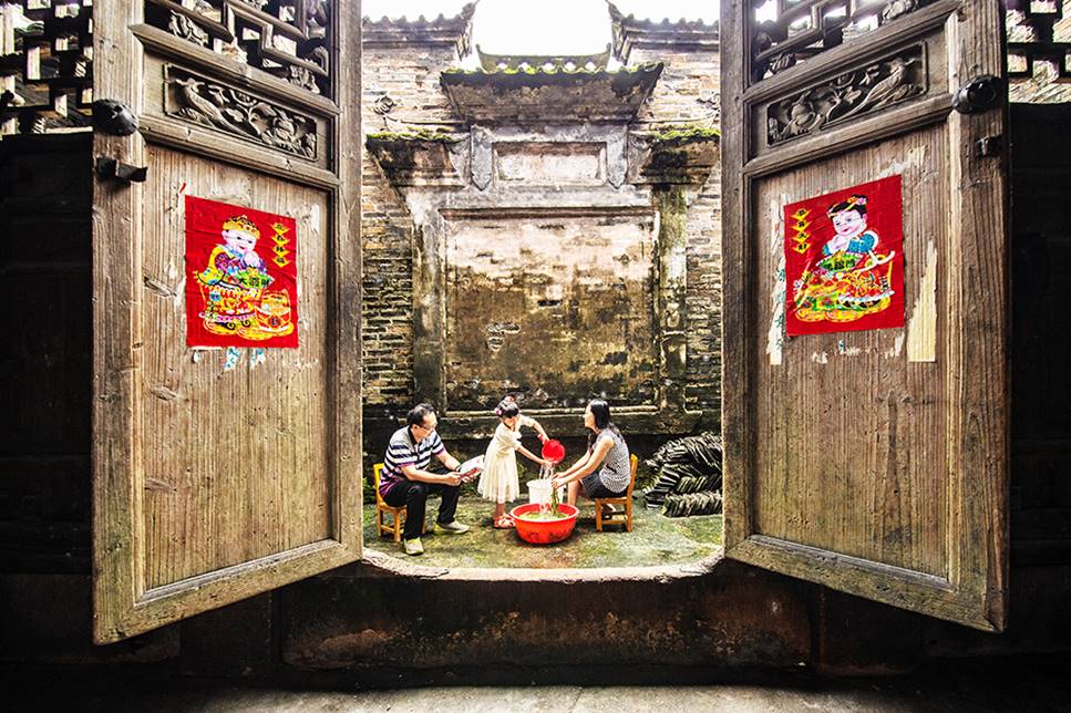 鹅卵石铺就的古巷道,徽派建筑的青砖老宅见证了古村的历史苍桑。
