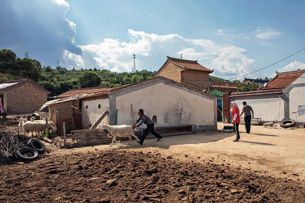 圈养的羊跑出来了圈舍,要把它们继续关起来。2019年7月,拍摄于宁夏彭阳县。 李刚 摄