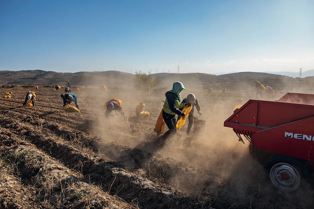 合作丰收。2018年10月,拍摄于宁夏固原官亭镇。 李刚 摄
