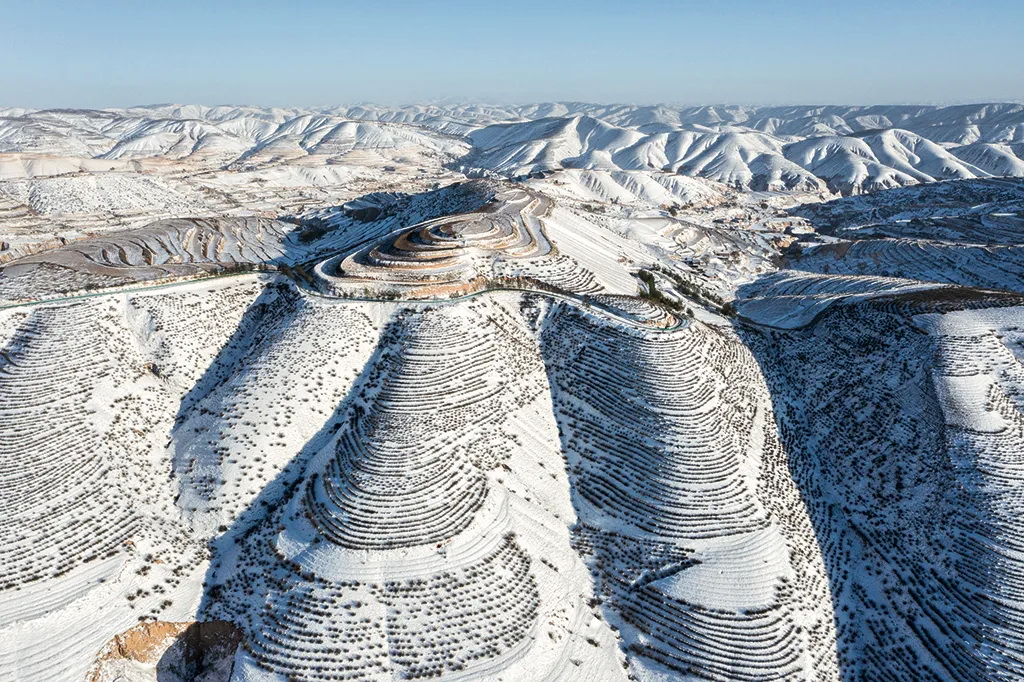 旧日的干山秃岭,变成了曲线优美的图画。2021年11月,拍摄于宁夏固原官亭镇。 李刚 摄