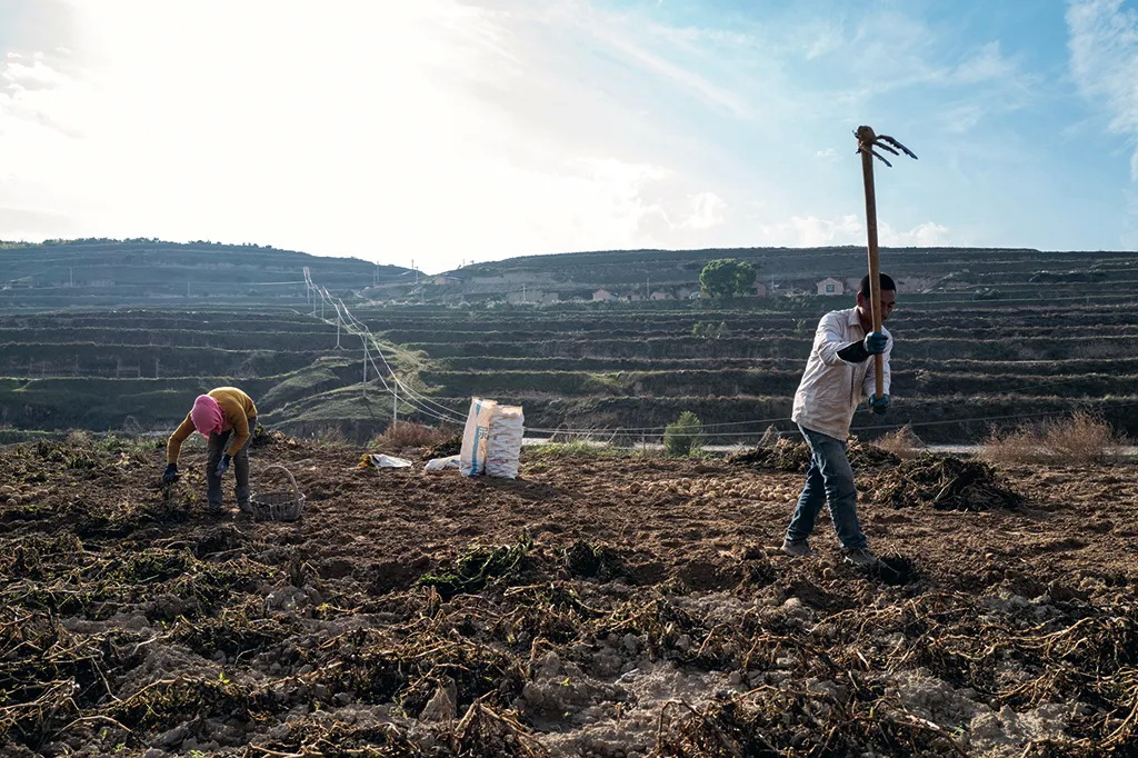 挖洋芋的小两口。2021年10月,拍摄于宁夏固原官亭镇。 李刚 摄